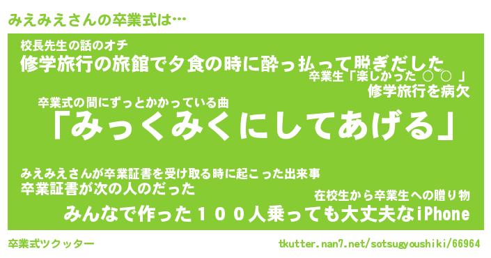 | ヘコむあだ名 | 『みえにー』『なまこ酢』 |