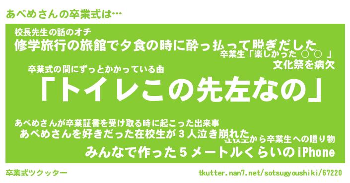 | 伝説のあだ名 | 『伝説のスナイパーあべめ』 |