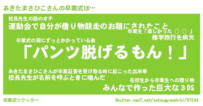 | ヘコむあだ名 | 『あきっふぃ~』『酢こんぶ』 |