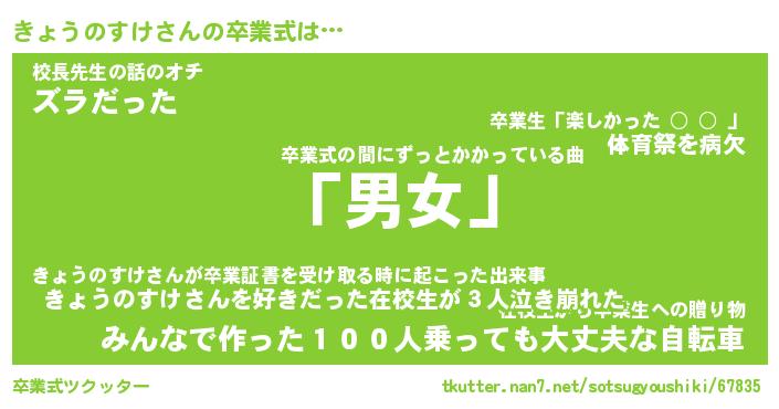 | 男性向けラノベタイトル風あだ名 | 『きょうのすけの憂鬱』 |