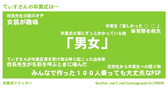 | 伝説のあだ名 | 『伝説のスナイパーてぃす』 |