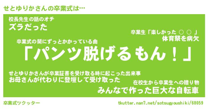 | 伝説のあだ名 | 『不死鳥のスナイパーせとゆりか』 |