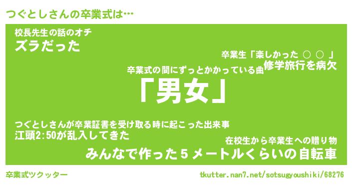 | ピコ太郎風あだ名 | 『ツコ四郎』『ピツ三郎』『ツグ二郎』 |