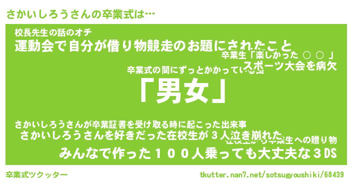 | 胡散臭い通販商品みたいなあだ名 | 『必ず成功する霊験あらたかなお札…その名も「さかいしろう」』 |