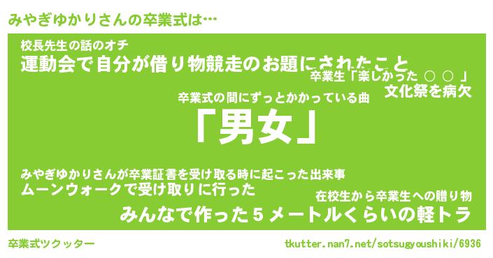 | 男性向けラノベタイトル風あだ名 | 『みやぎゆかりの憂鬱』 |
