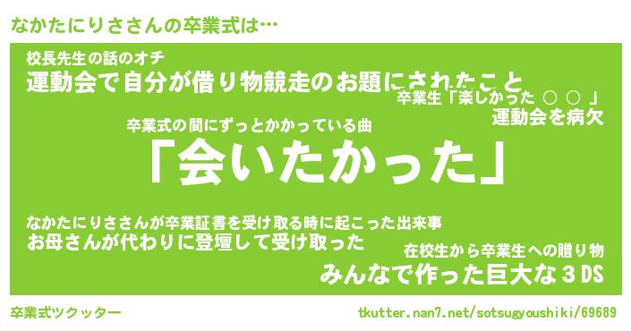 | 伝説のあだ名 | 『不死鳥のスナイパーなかたにりさ』 |