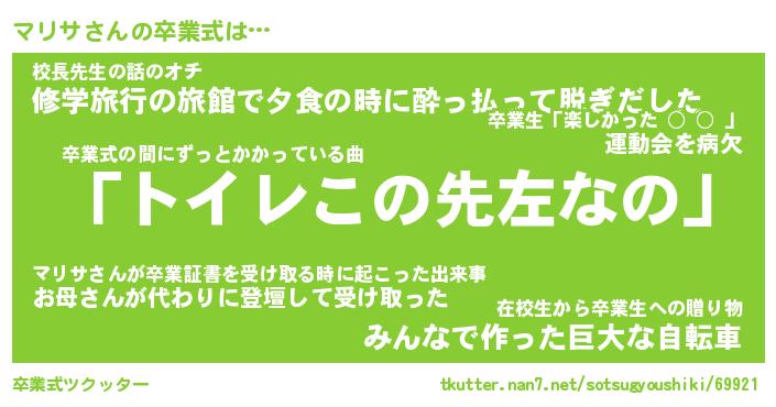 | 意味不明あだ名 | 『ペロリンマリサ』『マリサフォーエバー』 |