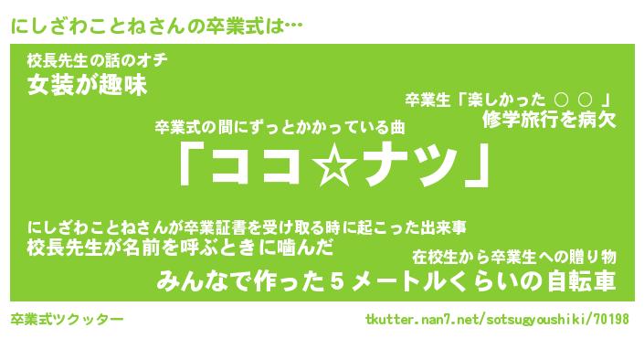 | 男性向けラノベタイトル風あだ名 | 『ニシザワコトネアートオンライン』 |