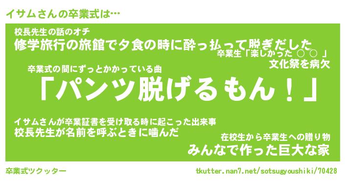 | 意味不明あだ名 | 『ペロリンイサム』『イサムフォーエバー』 |