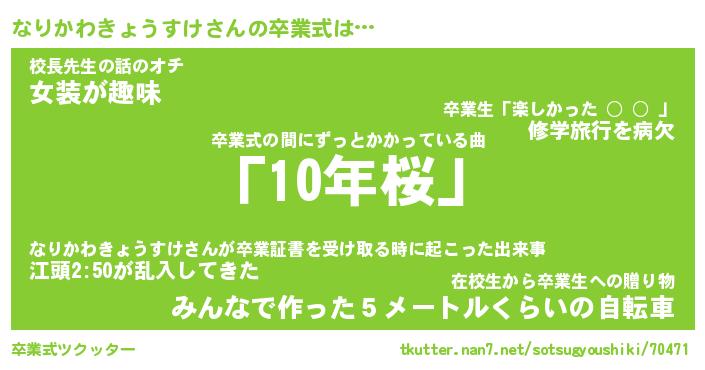 | 伝説のあだ名 | 『封印されしスナイパーなりかわきょうすけ』 |