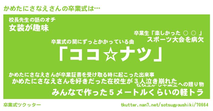 | ヘコむあだ名 | 『かめにー』『酢こんぶ』『かめ太郎』 |