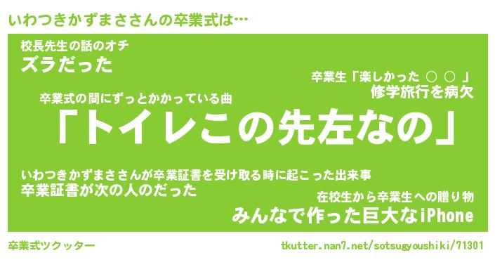| 胡散臭い通販商品みたいなあだ名 | 『必ず成功するブレスレット…その名も「いわつきかずまさ」』 |
