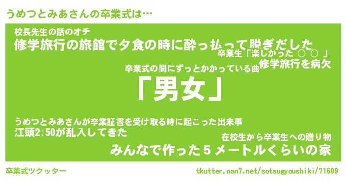 | 男性向けラノベタイトル風あだ名 | 『うめつとみあの憂鬱』 |