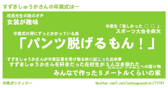 | ヒーロー風カッコイイあだ名 | 『スーパースズキシュウカ』 |