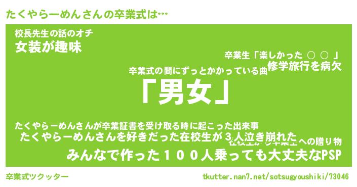 | 男性向けラノベタイトル風あだ名 | 『たくやらーめんの憂鬱』 |