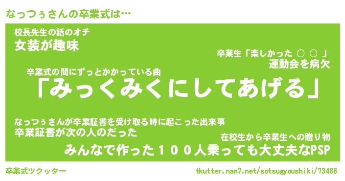 | 胡散臭い通販商品みたいなあだ名 | 『必ず成功するブレスレット…その名も「なっつぅ」』 |