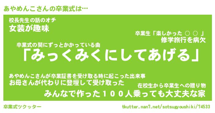 | 欧米人風あだ名 | 『マイケルあやめんこ』 |