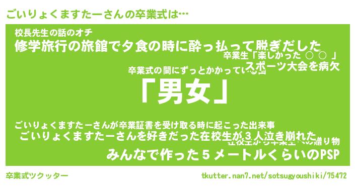 | ヒーロー風カッコイイあだ名 | 『スーパーゴイリョクマスター』 |