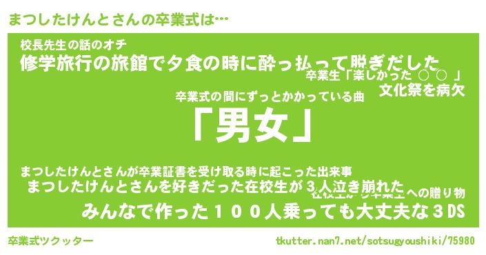 | 恥ずかしいあだ名 | 『プリティーまつしたけんと』『まつちん』 |