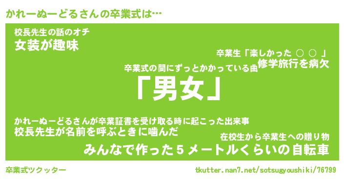 | 伝説のあだ名 | 『伝説のスナイパーかれーぬーどる』 |