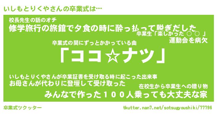 | ヘコむあだ名 | 『いしもー』『牛乳』『いしっちょ』 |