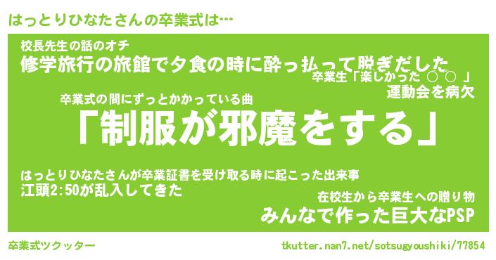 | 胡散臭い通販商品みたいなあだ名 | 『億万長者になれるブレスレット…その名も「はっとりひなた」』 |