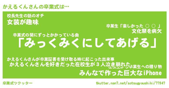 | 胡散臭い通販商品みたいなあだ名 | 『必ず成功する霊験あらたかなお札…その名も「かえるくん」』 |