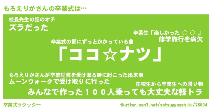 | ヘコむあだ名 | 『もろにゅー』『なまこ酢』 |