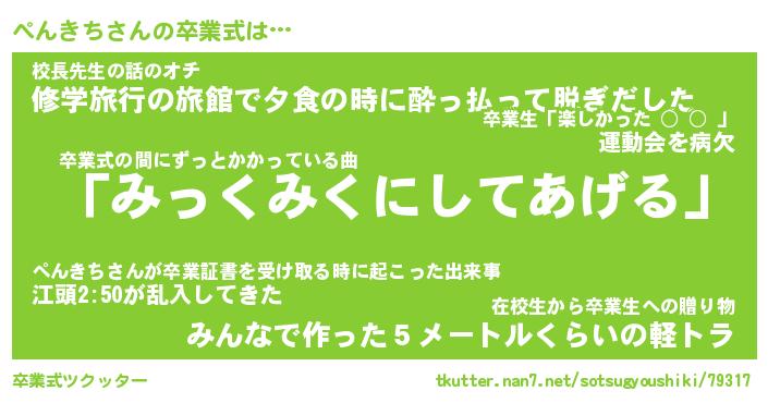 | 意味不明あだ名 | 『ペロリンぺんきち』『永久保存ぺんきち』 |