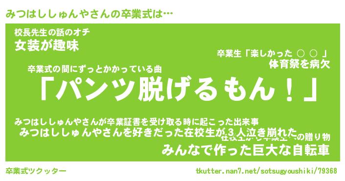 | 胡散臭い通販商品みたいなあだ名 | 『モテモテ間違いなし霊験あらたかなお札…その名も「みつはししゅんや」』 |