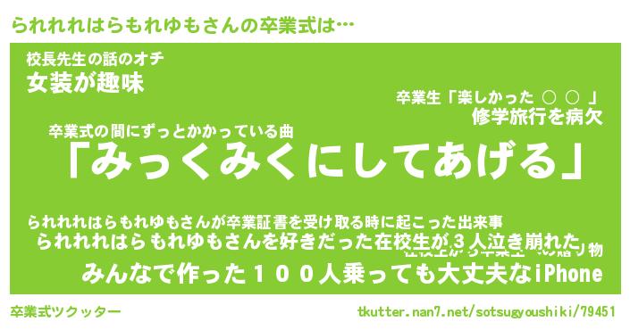 | 男性向けラノベタイトル風あだ名 | 『られれれはらもれゆもの憂鬱』 |