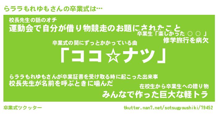 | 男性向けラノベタイトル風あだ名 | 『らララもれゆもの憂鬱』 |