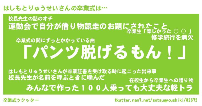 | 伝説のあだ名 | 『不死鳥のスナイパーはしもとりゅうせい』 |