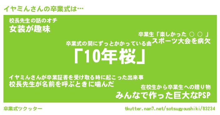 | 意味不明あだ名 | 『ペロリンイヤミん』『永久保存イヤミん』 |