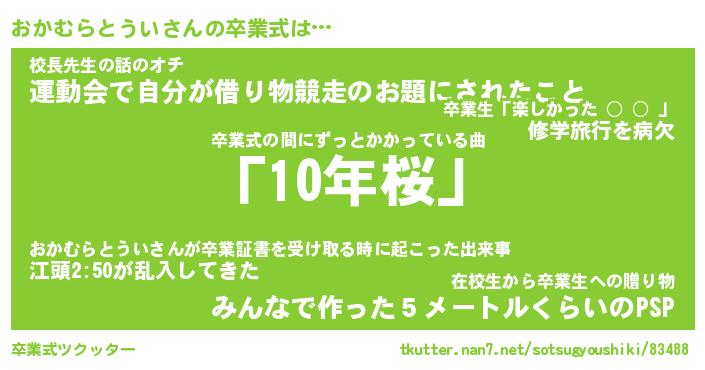 | 伝説のあだ名 | 『封印されしスナイパーおかむらとうい』 |