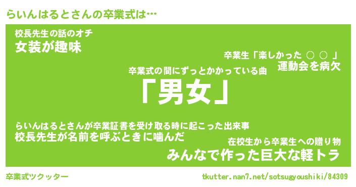 | 男性向けラノベタイトル風あだ名 | 『らいんはるとの憂鬱』 |