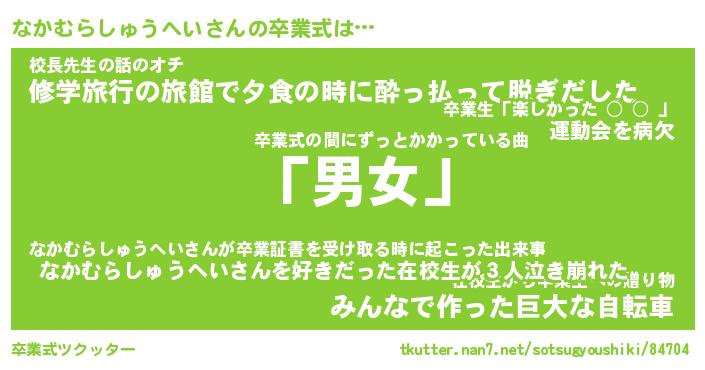 | 男性向けラノベタイトル風あだ名 | 『なかむらしゅうへいの憂鬱』 |