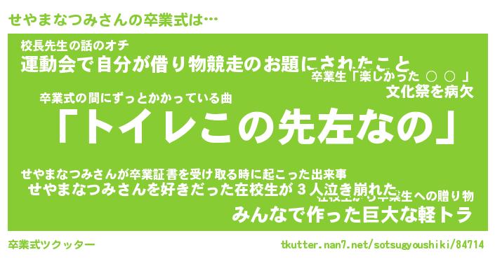 | 伝説のあだ名 | 『伝説のスナイパーせやまなつみ』 |