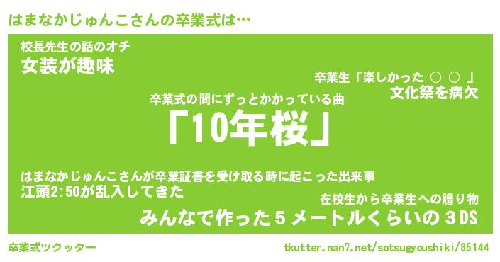 | 伝説のあだ名 | 『封印されしスナイパーはまなかじゅんこ』 |
