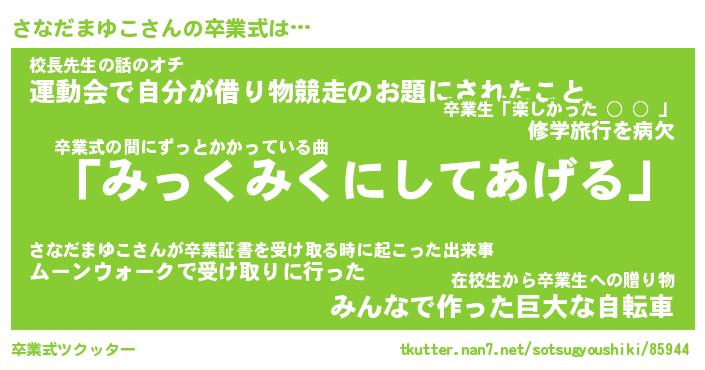 | 伝説のあだ名 | 『伝説のスナイパーさなだまゆこ』 |
