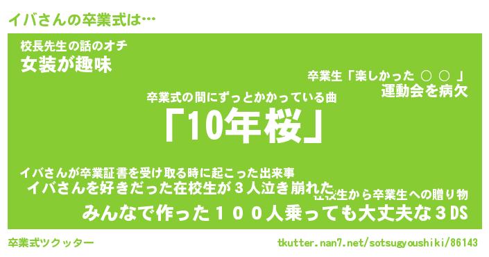 | ヘコむあだ名 | 『イバにゅー』『なまこ酢』 |