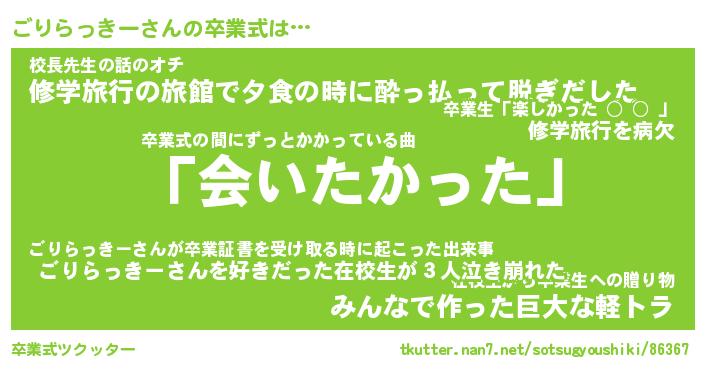 | ヘコむあだ名 | 『ごりにゅー』『牛乳』『ごりお』 |