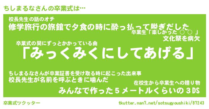 | ヘコむあだ名 | 『ちしにゅー』『酢こんぶ』 |
