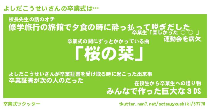 | 恥ずかしいあだ名 | 『プリティーよしだこうせい』『よしちん』 |