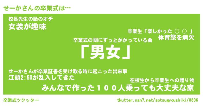 | ピコ太郎風あだ名 | 『セコ二郎』『ピセ次郎』『セー八郎』 |