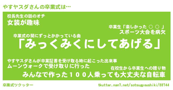 | ピコ太郎風あだ名 | 『ヤコ史郎』『ピヤ一郎』『ヤス六郎』 |