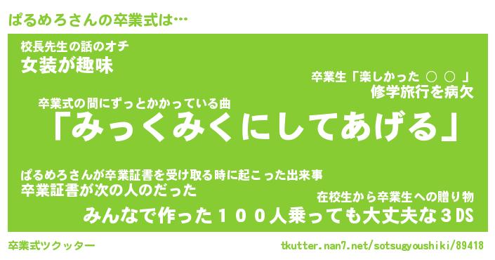 | 胡散臭い通販商品みたいなあだ名 | 『必ず成功する霊験あらたかなお札…その名も「ぱるめろ」』 |
