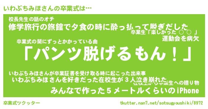 | 恥ずかしいあだ名 | 『プリティーいわぶちみほ』『いわっちょ』 |