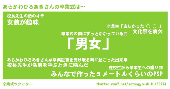 | 胡散臭い通販商品みたいなあだ名 | 『必ず成功する霊験あらたかなお札…その名も「あらかわひろあき」』 |