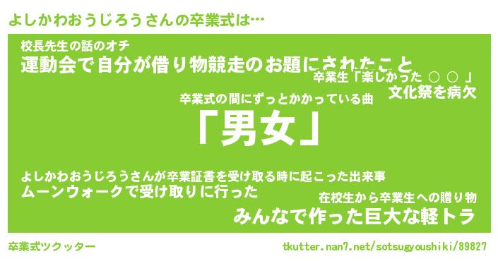 | 胡散臭い通販商品みたいなあだ名 | 『必ず成功するブレスレット…その名も「よしかわおうじろう」』 |